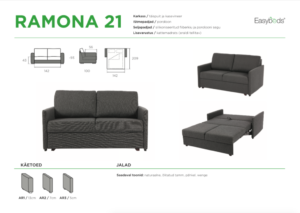 RAMONA diivanvoodi sobib ideaalselt väiksemasse korterisse või suvilasse. Lihtne süsteem, mugav ning piisavalt pikk magamisase – need on ühed suured plussid diivanvoodi juures.