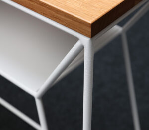 Laua raam ja riiul on valmistatud pulbervärvitud metallist, mis on toonitud vastavalt Teie valikule mustaks või valgeks.