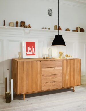 Kummutil on neli sahtlit, mis liiguvad kvaliteetsetel metallsiinidel ja mille põhjad on tammevineerist.