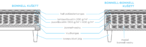 - Kušetil kasutatud bonnell tüüpi vedrustust (120 vedru/m²) või topelt bonnell tüüpi vedrustust (120 vedru/m²).