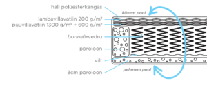 - Kattematerjalina on kasutatud halli tepitud polüesterkangast.