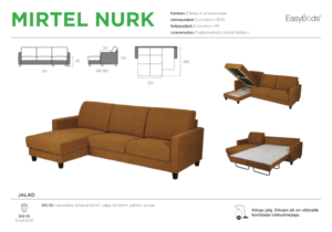 Nurgadiivanvoodi MIRTEL on üks väga põneva disainiga toode. Muuda üheks suureks voodiks, ava ainult üks magamisosa – valik on sinu! Mugavust lisab ka see, et padjad ei jää kuskile üle – need lähevad mugavalt pead toetama. Mahukas pesukast on alati üks suur pluss – voodipesu saab silma alt ära sättida.