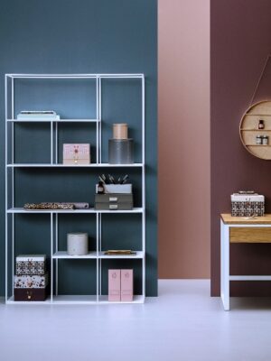 A-SYMETRIC on kaasaegne ja minimalistlik riiul. Hoolimata oma õhukesest konstruktsioonist on mööbel erakordselt stabiilne, sest on valmistatud üleni pulbervärvitud terasest. Riiulite ebatavaline paigutus aitab teil soovitud esemeid eksponeerida erilisel viisil.