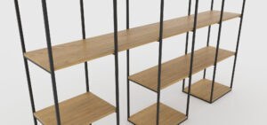 Riiuli tasapinnad on valmistatud lakitud täistammepuidust.