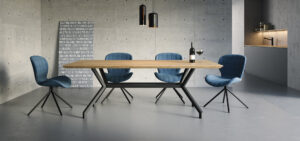 Söögilaud NORMAN on kaasaegne ja lihtne, aga väga huvitava kujuga. Tänu keskele kitsenevatele jalgadele tundub see söögilaud kerge ja istumisasend on mugav, sest seal on piisavalt jalaruumi.