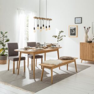 Söögilaua tasapind on valmistatud õlitatud täistammepuidust.